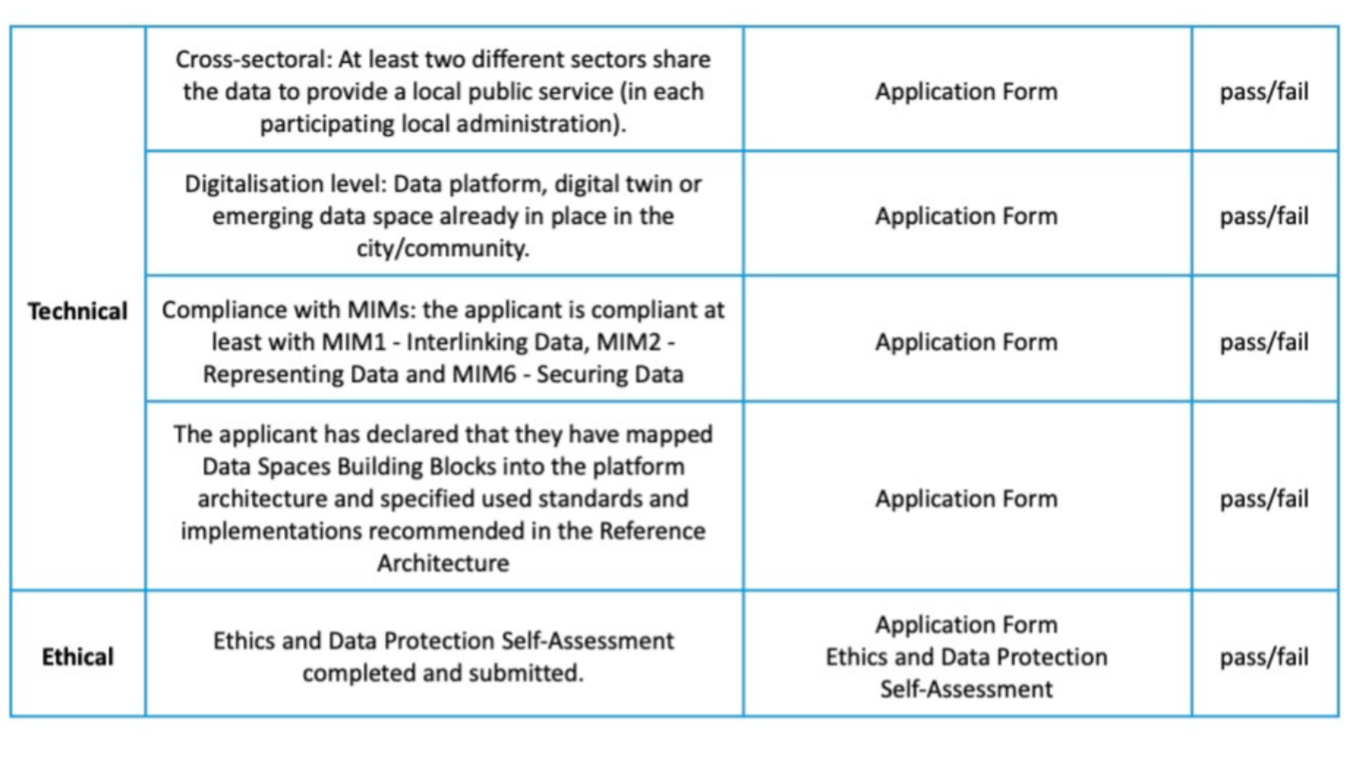 The blueprint for European smart communities data space was developed by the preparatory action for Data Spaces for Smart and Sustainable Cities and Communities (DS4SSCC), and it is being developed during the deployment phase. The blueprint stands for a set of guidelines and instruments for the deployment of the data space. We strongly recommend applicants to get acquainted with the DS4SSCC data space blueprint, as it will serve as the foundation for proposed solutions. All applicants need to demonstrate how they (plan to) align with the DS4SSCC blueprint to be able to federate with other data spaces.